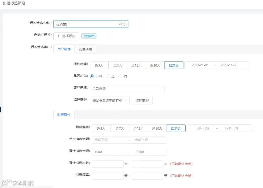 【宝点数字】为了提高运营效率,企客宝点「标签策略」自动打标签的功能上线啦!只要同步客户消费数据后,我们即可在后台根据消费行为、客户属性等条件一键筛选客户,直接同步标签到企业微信,精准智能、简化操作,能满足更多营销场景需求。