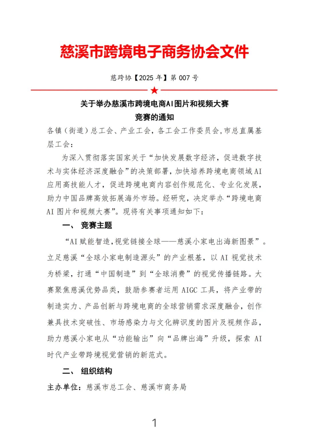 【活动通知】关于举办慈溪市跨境电商AI图片和视频大赛 竞赛的通知