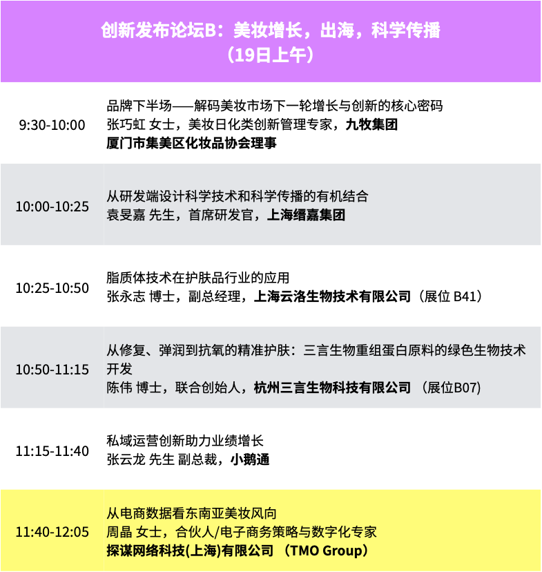 11月19日上午,TMO Group 将于“创新发布论坛B:美妆增长,出海,科学传播”现场,分享美妆护肤出海的新鲜趋势,不容错过!