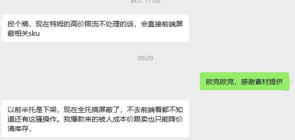 “Temu现在高价限流不处理的话,会直接前端屏蔽相关SKU。”