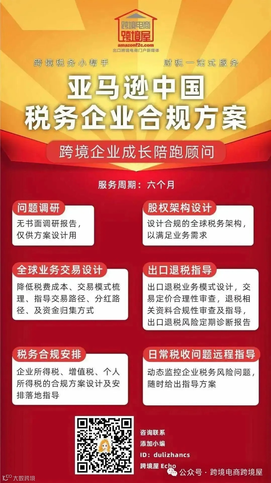 一站式解决卖家财税合规问题,和卖家在合规路上共同成长,了解跨境电商行业税务合规方案,敬请添加小编咨询:
