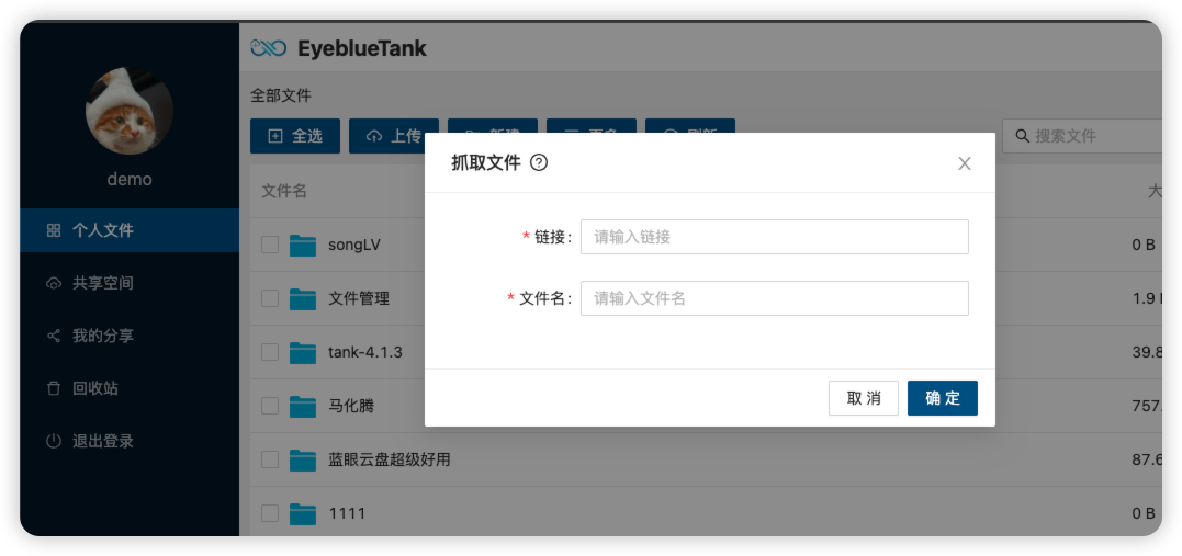 支持 文件上传,文件夹上传,拖拽上传,url抓取上传,复制粘贴上传,文件预览,文件下载,聚合下载,提取码分享 -