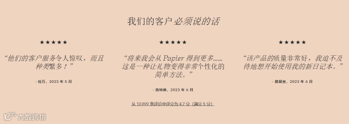 Papier还在官方网站展示已购买用户的真实评论,且订单时间都是近期的,增进感兴趣用户对产品的信任,激发潜在购买用户快速完成订单。