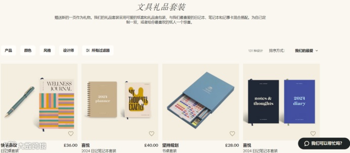 Papier独立站内设置精细的产品栏目,有简约款笔记本、办公室专用笔记本、健康期刊、感恩日记、旅游杂志、阅读期刊、食谱、杂志相册等记事本;按照需求将计划本分为财务规划、膳食规划、办公桌规划等。