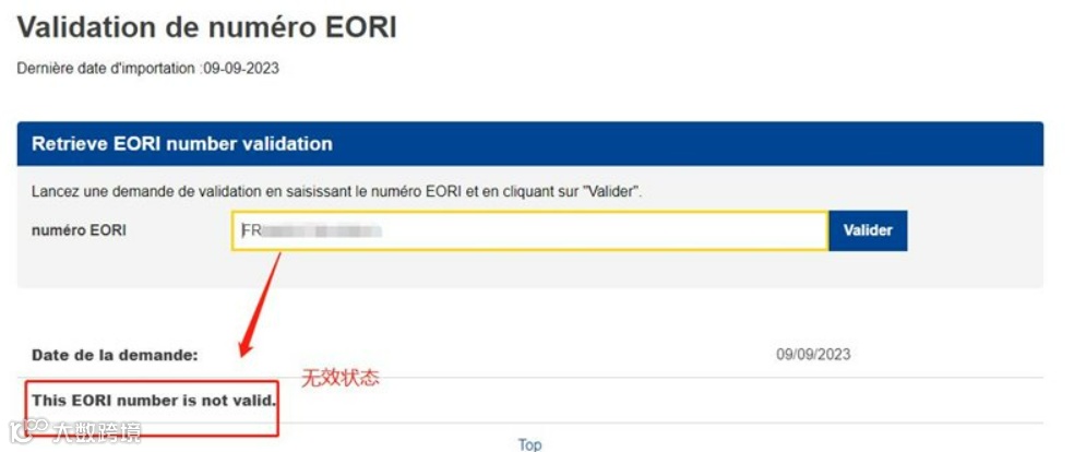 (3)查询结果【无效】则显示:This EORI number is not valid.