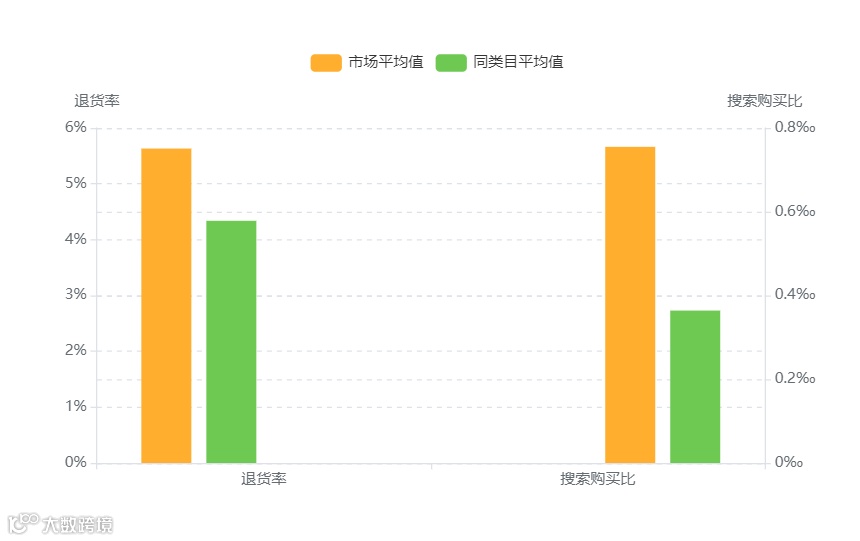 接着就是退货率指标。很多卖家定价时候利润率都很高,但是真正做的时候发现利润全部都被退货吃掉了,所以说退货率也是我们筛选市场分析的重点。