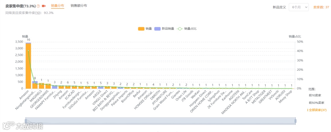 这个指标需要控制在40%以内,太高的话就证明市场被某几个链接垄断导致我们新品很难获得订单。