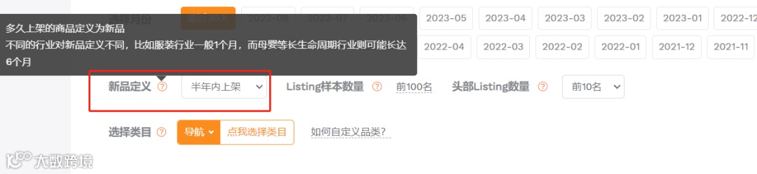 接着我们把新品定义为半年之内上架这个链接,因为真的有很多的产品是需要发海运的,那么从产品的链接上架到产品的到货,可能已经过去了一个多月的时间,所以真正的推广时间比较短。一般来说把半年之内上架的产品定义为新品。