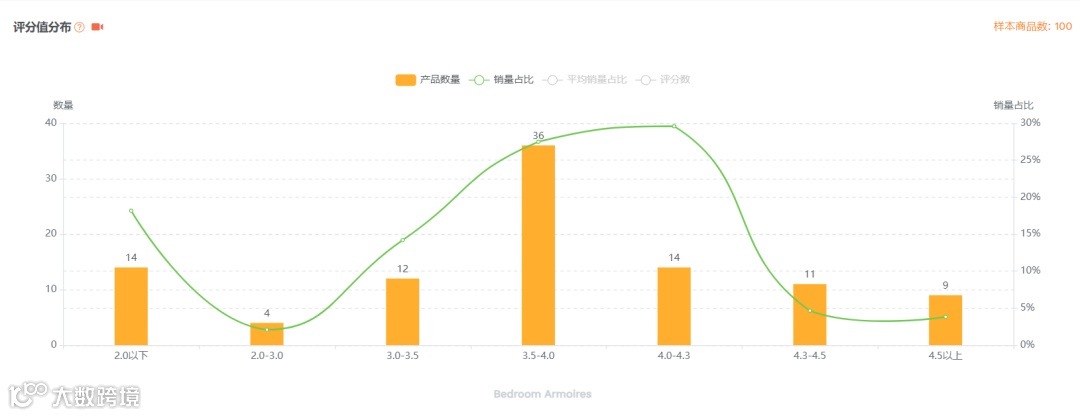 平均星级这个指标也是非常重要,可以通过平均星级这个指标去分析这个市场的产品到底有没有无法解决的痛点。如果说平均星级都是在四分以内的话,那么就证明这个产品的退货率包括客诉都非常高,有明显的没有办法解决的痛点,那么我们在做这个类目的时候就算是利润率很高,但是很多可能都会被退款吃掉,最后一算还是不赚钱。