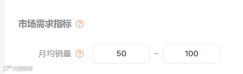 那么这个数据的指标我们是需要×30天的。所以我们不要拉得太大,一般来说,我们可以去筛选20-100之间,按照100单的话,那么一个月的销量也是3000单了,还是比较大的。通过筛选我们的月均销量的指标来控制整个市场的大小,大部分卖家尽量选择中小型的市场为主,指标设置20到100这个指标是合适的。