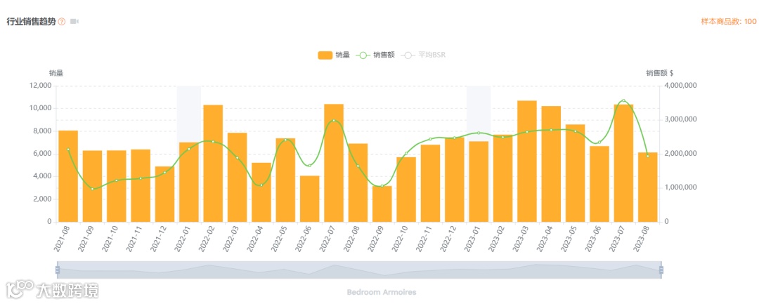 可以看到整体的市场数据,属于一个高客单价,销售数据也比较大的市场。