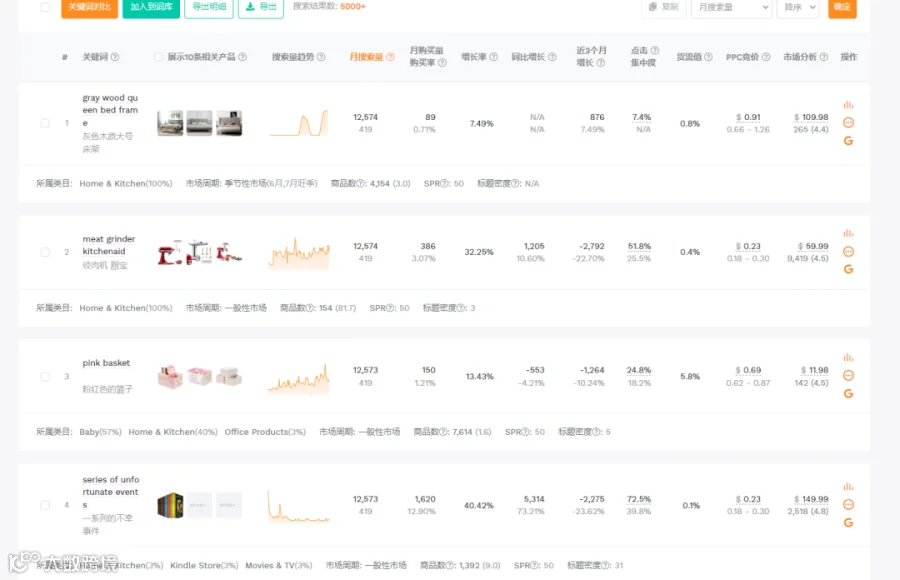 今天跟大家分享如何通过分析关键词来找到适合切入得细分市场,通过关键词数据协助我们进行选品。我一直有一个理念就是红海里面有蓝海市场,虽然说现在普遍整体市场情况是越来越卷,但是越是市场体量大得类目,里面包含得细分市场品类就越多,我们可以根据关键词得具体数据来判断细分市场竞争是否激烈。