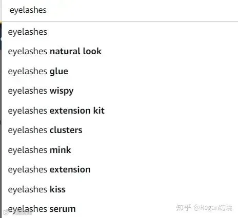 一、以eyelashes举例,可以看到下拉框得延伸关键词都有哪些: