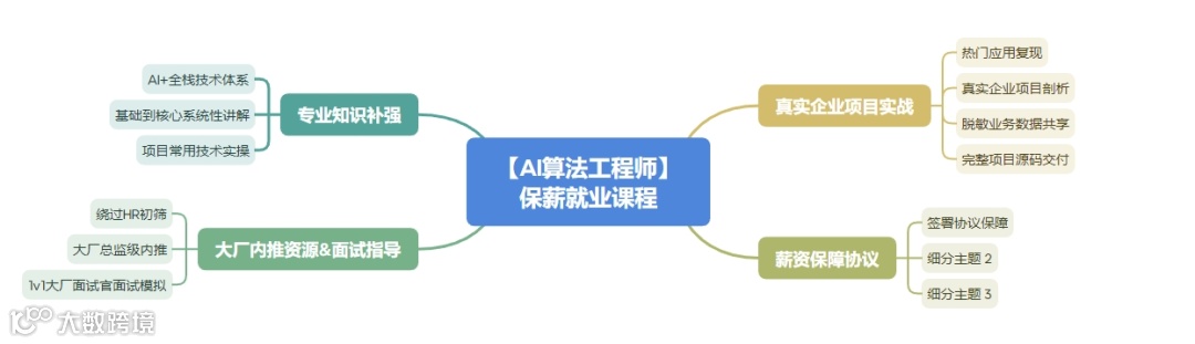 课程体系包含了Ai领域前沿技术、核心项目,覆盖非常全面,适用于所有行业的算法岗位,整个课程更注重带领学生项目实操和落地,授人以鱼不如授人以渔,学完后还会具备举一反三的能力,无论进入什么行业,算法岗位和项目均能胜任。