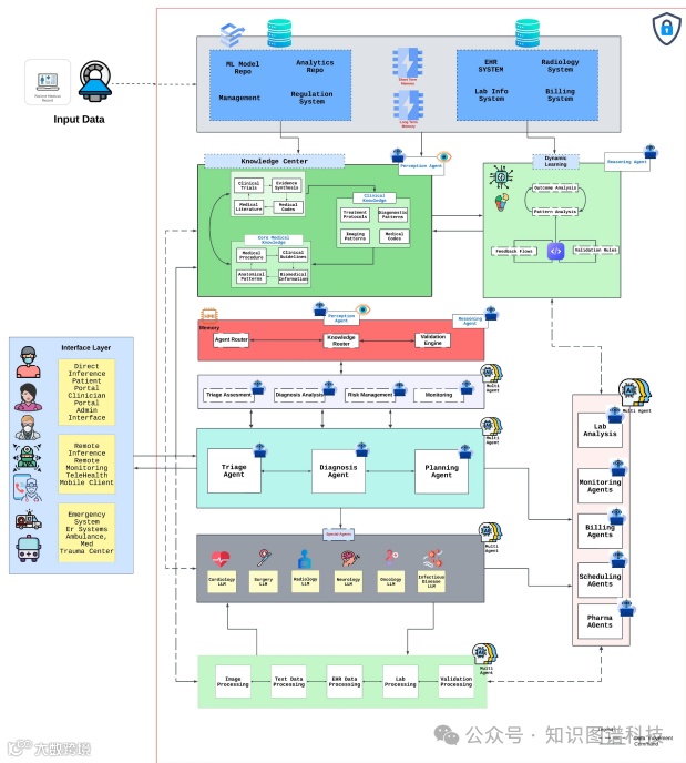 :提供了一个综合的架构框架,展示了如何在现代医疗环境中整合各种AI代理,同时保持安全协议和临床效果。