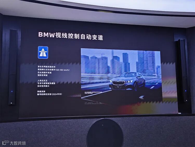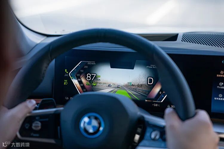 这时,尽管车辆已经开启了辅助驾驶,但驾驶人员可以依旧保持以往的驾驶习惯,去看一眼变道一侧的外后视镜,智驾系统在通过红外摄像头追踪到驾驶员视线和头部的动作后,车辆随即就会完成自动变道。整个过程非常地丝滑,并且可以让用户在开启智驾的同时,依旧保持一个与过往一致的驾驶系统,很好地展现了宝马“人心工学”的理念。