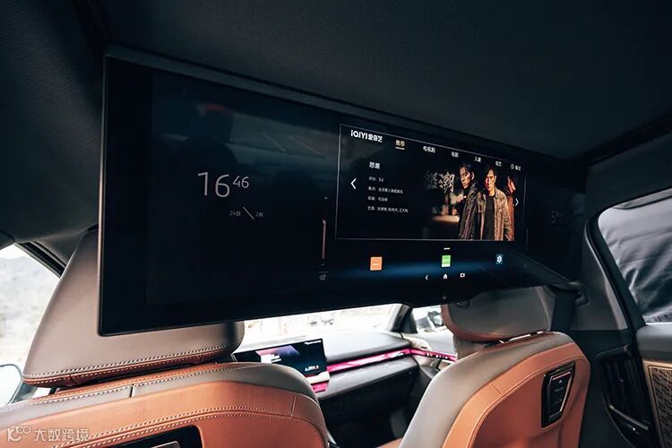 并且屏幕采用了自动翻折隐藏的设计,还能够根据前排座椅位置自适应调整位置。在实际体验的时候,这块屏幕搭配车内的宝华韦健音箱,确实可以带来不错的观看体验,有着不俗的沉浸感。并且屏幕的位置,也可以让后排的乘坐人员可以比较好地进行操作。