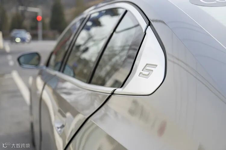 值得一提的是,在侧面经典的霍氏拐角处,这一次加入了数字“5”标识,可以更加直观地展示其新5系的身份。并且纯电车型在充电的时候,这个数字标识还会展现出呼吸灯效果,非常独特。