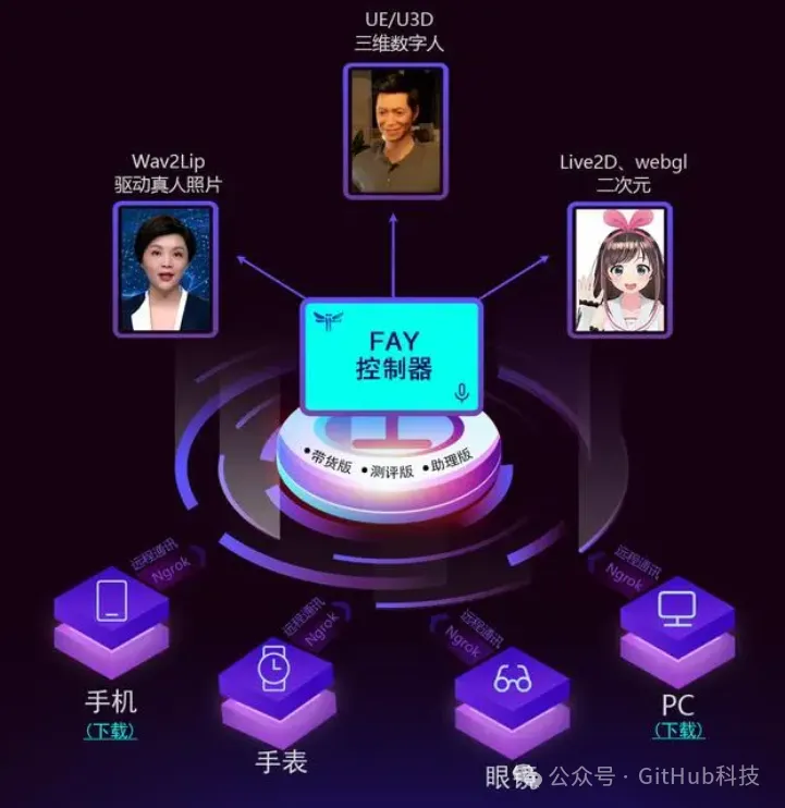 Fay是一个集成了语言模型和数字字符的开源数字人类框架。它为不同的应用程序提供零售、助手和代理版本,如虚拟购物指南、广播、助手、服务员、教师和基于语音或文本的移动助手。 开发人员可以利用该项目简单地构建各种类型的数字人或数字助理。该项目各模块之间耦合度非常低,包括声音来源、语音识别、情绪分析、NLP处理、情绪语音合成、语音输出和表情动作输出等模块。每个模块都可以轻松地更换。 https://github.com/xszyou/Fay