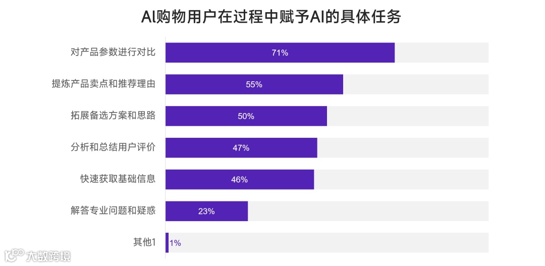 报告指出,20-39岁的高消费人群是AI购物的绝对主力,近6成的用户在使用AI购物后,大幅减少了在传统社媒的信息搜寻时间。AI的角色已完成根本性转变:它不仅是激发购物灵感的“起点”,更在决策中段充当“理性助手”(71%的用户依赖其生成参数对比表),并在终局成为关键的“决策复验者”。超过68%的用户明确表示,AI答案内容直接影响其对品牌的信任度。