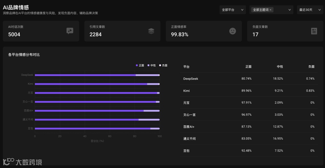 建立实时监测机制,追踪AI生成内容中的品牌情感变化,精准溯源负面信息,及时识别竞品贬损行为,为上市公司、金融机构等声誉敏感型企业构建可靠防护体系。