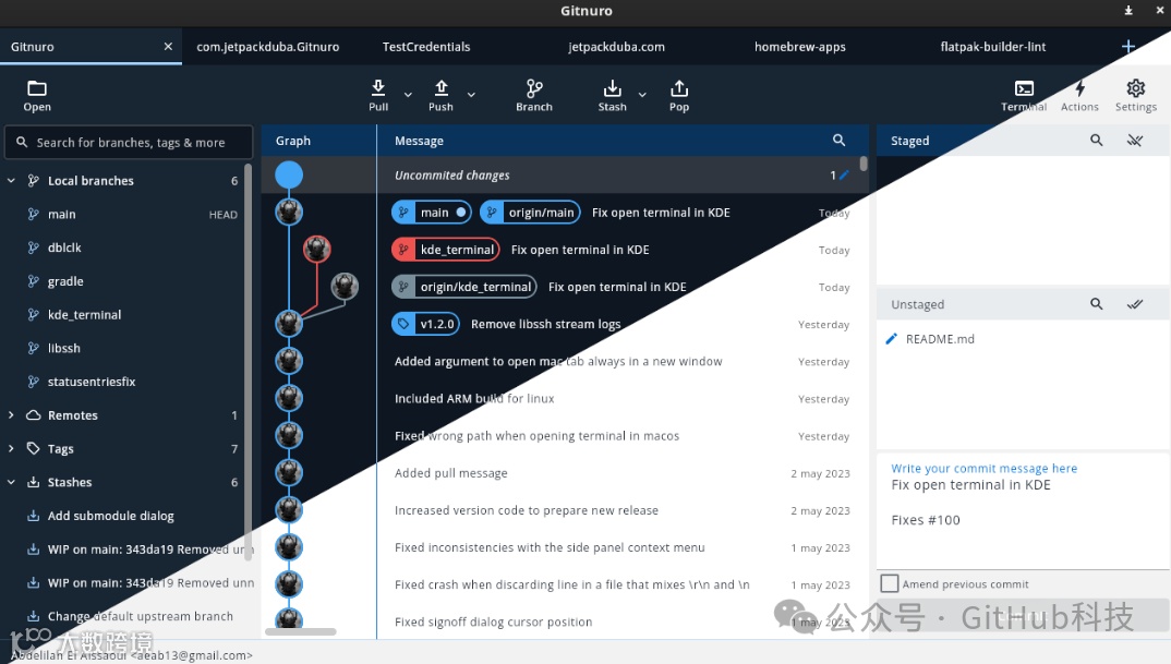 Gitnuro是一款基于JetBrains Compose和JGit开发的开源Git客户端,旨在为用户提供跨平台、无使用限制且不依赖Web技术的Git管理体验。无论是Git新手还是专业开发者,都能通过其直观的界面和全面的功能集高效管理代码仓库。