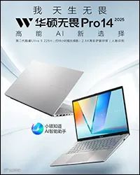 华硕无畏Pro14 2025 14英寸2.5K 酷睿Ultra 5 225H 板载+插槽 1个M.2 15.9mm/70Wh/1.37kg |