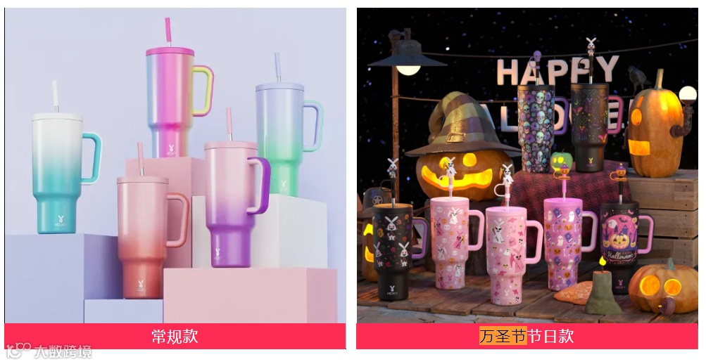 首先,是因为产品向外抓住了消费者的核心痛点,向内又挖掘到产品的稀缺性。功能上,其不仅能满足24小时保温保冷,且杯型设计和和杯盖的强密封性可以保证车载和随包携带等多种使用场景,甚至细致到吸管的出水量也能保持均匀,这些特点也是达人们生产推广内容时重点展示的卖点。在外形上,Meoky又通过节日款、联名款、定制款等形式为产品赋予稀缺性。