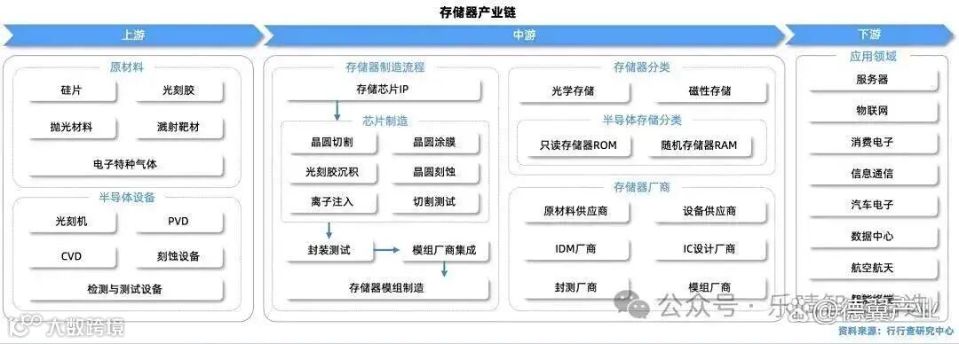 存储芯片产业链涵盖上游原材料与设备、中游芯片设计与制造、下游封装测试与模组集成及终端应用四大环节,各环节协同构成完整产业生态。