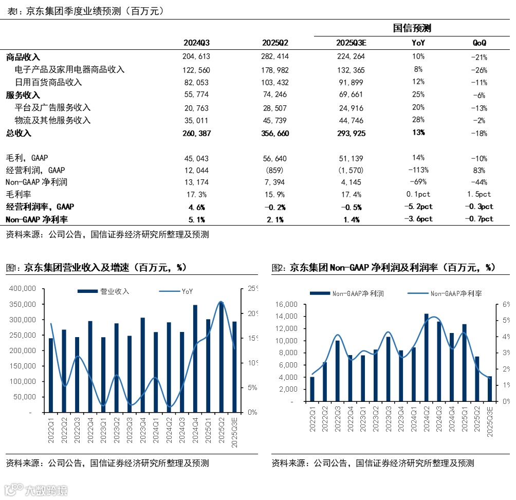 报告名称:国信证券-京东集团-SW(09618.HK) 2025Q3前瞻:电商业务表现亮眼,外卖新业务UE持续改善