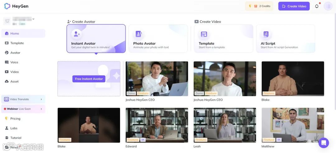 热度最高的便是AI视频翻译“Video Translate”,小编体验了一下,登录HeyGen官方网站,只需使用邮箱注册一个账号,或直接使用Google、Facebook账号登录,便能轻松进入HeyGen主页面。