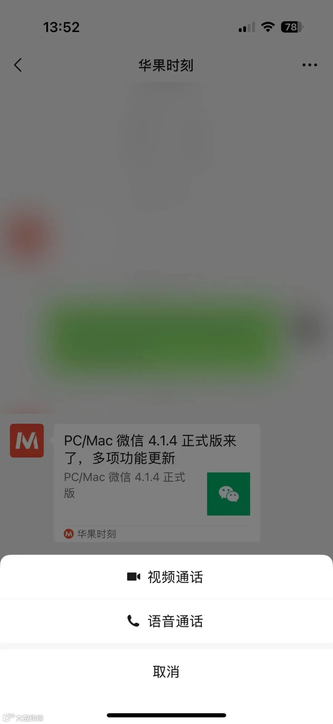 在正常模式下,与好友视频通话,需要「打开微信 → 找到与好友对话聊天框 → 点击 + → 选择视频通话 → 再点击视频/语音通话」才可完成拨号。