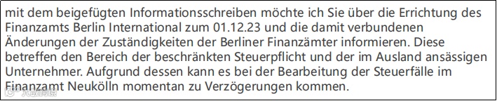 自2023年12月起,柏林国际税务局(Finanzamt Berlin International)正式设立[1]。该机构将接管Neukolln税务分局的部分职能,专注于处理海外企业的德国营业税相关事务。