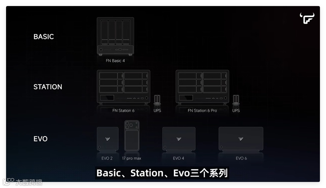 4天前,飞牛朱Sir 在官方视频号里分享了关于飞牛NAS正式版以及新品硬件未来趋势的一些消息。我是第一时间看了,但是没有做过多的解读,主要是因为最近刚好肺炎了,每天高强度输液,没时间码字儿。今天总算状态好了一点,然后就想着也没存稿发,就想和大家一起谈谈飞牛NAS正式版以及新品的一些个人解读。首先是新品硬件系列,原本飞牛给的消息一直都是 10月份会发出硬件新品,包括之前我也提供过新品的外观展示图。这张图大家肯定都看过很多遍了,这就是本次新品中的 6盘位 FN Station 系列。其实这个照片在网上挂出来以后,评论还是比较激烈的,觉得好看硬汉风的人也有,但是觉得太过呆板巨难看的人也有,所以争议性比较强。这次新给出的宣传中提到,FN Station 搭载了一块小屏幕,就是正面左下角的区域,这一块地方在样机中原来是没有任何东西的。因此很明显是飞牛在吸取了网友的意见后(压力太大),临时决定去修改的部分,所以我认为这也是为什么 10月份准备发布一再往后拖延的一个原因。此外,原本有的正面磁吸板,在现在的新宣传图中也没有了,考虑到 EVO 系列中将面板画了出来,所以这个原来很多人诟病的钢铁直男面板,也有可能是选配或者取消了。显示屏的玩法,之前海康、华硕等机型都已经给我们探过路了,主要还是围绕 NAS 的 I/O、状态、温度、网速等性能监控做文章。至于能不能安装其它系统,或者自己 DIY 数据源,这个可能要后续看飞牛社区的大佬们如何操作,甚至能不能自己替换为点阵屏,也很令人期待。回到硬件部分,FN NAS 后续将分为 Basic、Station、Evo 三个系列,其中Basic 就是传统4盘位NAS;而Station 前面提到了,分为标准版和 Pro 版本,这都是飞牛准备了很久的产品线,就不过多说了。尤其是 FN Station Pro 支持的 DIY 属性,一般我们可以理解为预留了PCIe 槽或者拥有雷电4扩展能力?EVO 系列其实是飞牛本次宣传的重点内容。产品包含 EVO 2\EVO 4\EVO 6 三个型号,均为左右分布式结构(左侧硬盘笼、右侧主板区域)。而上一款主打可拆卸式或可DIY 的 NAS 铭凡 N5系列,则是上下结构的。这款系列产品,我认为是飞牛和其它硬件厂家合作出品的概率更高一些。另外,从视频中可以看出,产品体型拿来和 17pm 做对比,因此主打的就是体积小巧,试图改变目前 NAS 大体积的问题。我们认为这个草图绝对是比例真实的,所以我用鼠标测量了一下大致的比例尺,然后把结果丢给豆包计算了一下,得出 EVO 2 尺寸为【110.5*120.5*深度】(主板至少是 nano-itx 尺寸),而一块 3.5寸硬盘的尺寸约为【25.4*101.6*147】,那么余下留给主板的空间只有 50mm 左右。在看视频后面放出的右侧主板区域,还包含了数个 M.2 Nvme 的盘位,在如此小巧的空间内,如何做好【温度控制】将会成为 EVO 系列最大的挑战。至少 CPU 应该需要单独的主动散热模块。然后就是关于模块化的设计,EVO 特别强调了是一款支持 CPU 模块化设计的 NAS,它将支持从 X86 到 ARM,从 Intel 到 AMD。这意味着飞牛官方后续将出售不同架构的 板U 套装,允许用户根据自己的需要自行选择处理器框架和机箱组合。另外,在视频里还提到了关于 ARM 的进度。很明确,ARM 是一块从0开始的工作,绿联从 UGOS Pro 发布,到 DH4300 Plus 发布,2年多的时间,用来参照飞牛 X86 系统移植到 ARM 架构上,我觉得还是有一定参考意义的。但是 ARM 的兼容性挑战很大,如果飞牛真的不断扩展了 ARM 的兼容性,那么最大的意义就是让 各类派、tvbox 的价值大大提升,那么咸鱼导爷的春天也许又要来了。另外一点,就是不知道大家还记不记得前段时间飞牛上线的社区 linux binder 驱动,这个是解决云安卓手机的一个重要工具,尤其是通过 redroid 来实现云手机多开、云游戏挂机等场景。如果这个内核版本结局了、redroid 容器内置了, 那么 AMR 的含金量将继续提高。
