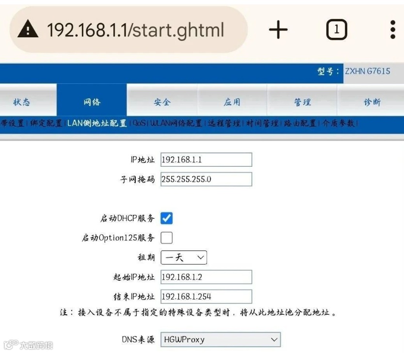 先通过光纤连接主从设备,进入主光猫后台,找到 “网络 - LAN 侧地址配置”。在里面找主机名以 ZTE 开头、端口为下行 PON 的设备,记下它的 IP 地址。