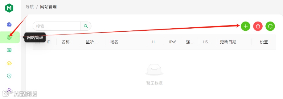 在左边的功能树上,点“网站管理”,再在右上角,点“+”号