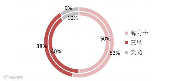 作为最先开发出HBM芯片的海力士,在AIGC行业迅速发展背景下得以抢占先机,率先实现HBM3量产,抢占市场份额。2023年下半年英伟达高性能GPUH100与AMD MI300将搭载海力士生产的HBM3,海力士市占率将进一步提升,预计2023年海力士、三星、美光市占率分别为53%、38%、9%。