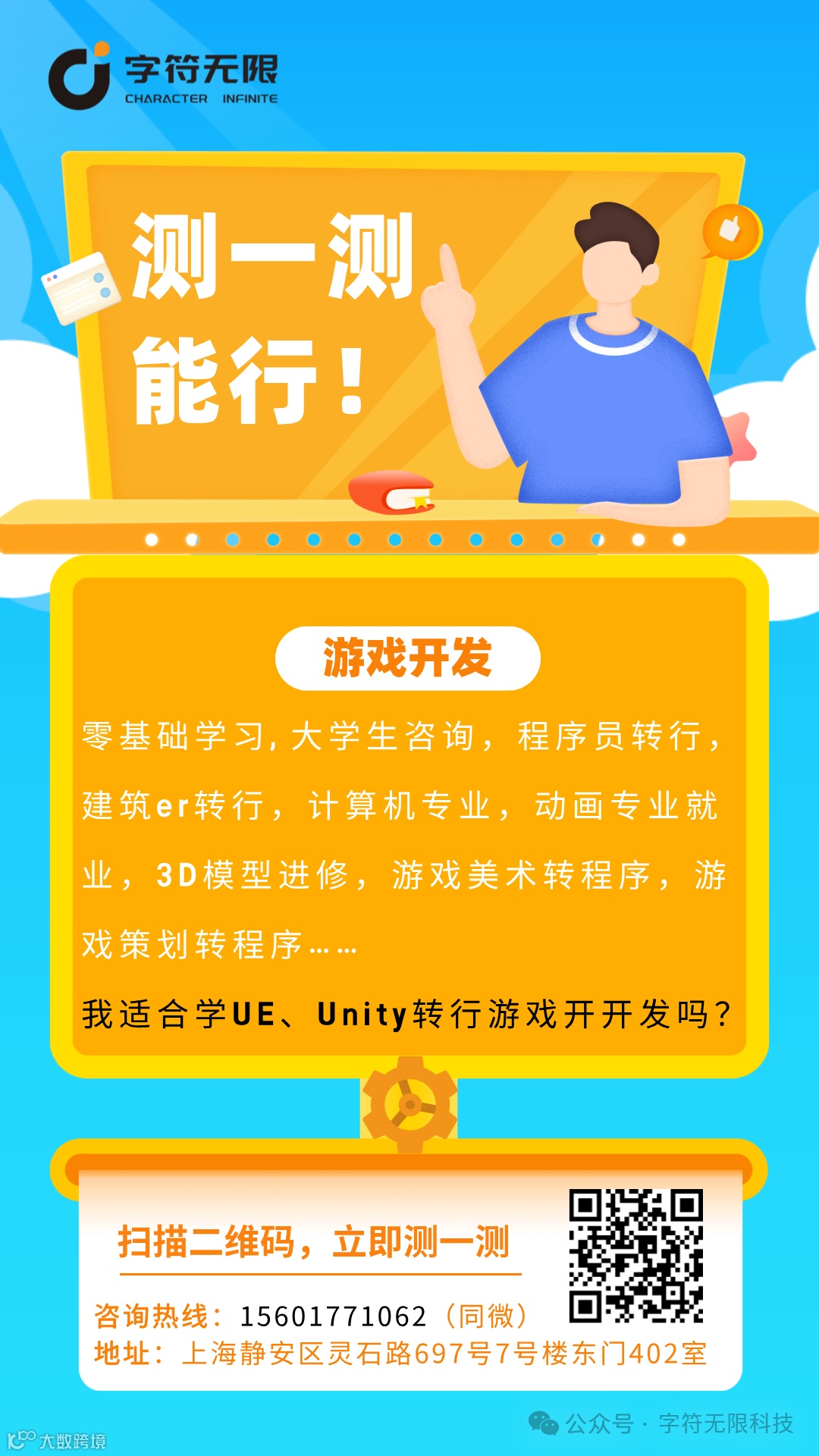 「上海字符无限科技」杰普软件战略合作伙伴,十八年来专注IT行业产学研一体化,主营游戏开发与设计,Unity/UE虚幻引擎开发与设计,VR/AR/MR,智慧城市,数字孪生,元宇宙相关等高端人才孵化。欢迎联系我们~