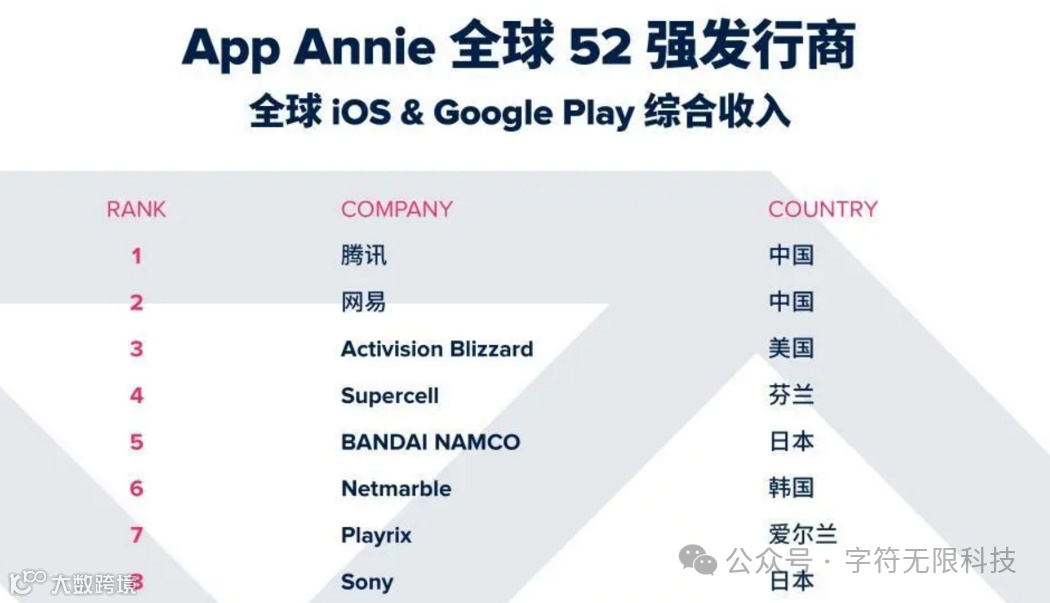 依托强大的精品游戏研发能力,网易游戏近年来在海外市场持续迎来重大突破,连续五年蝉联 App Annie“年度全球发行商 52 强”榜单第二名。