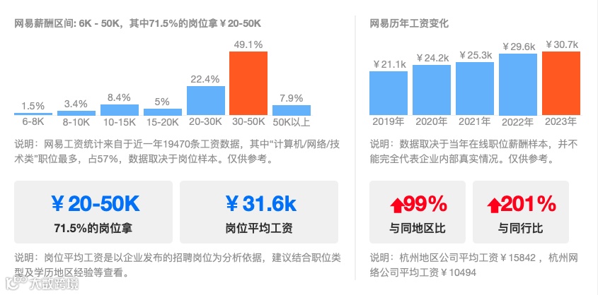 网易的薪资,在行业内也很赞,据网络数据显示,网易月平均薪资可达30K+!相当于在网易工作两三年就能把留学费用挣回来。