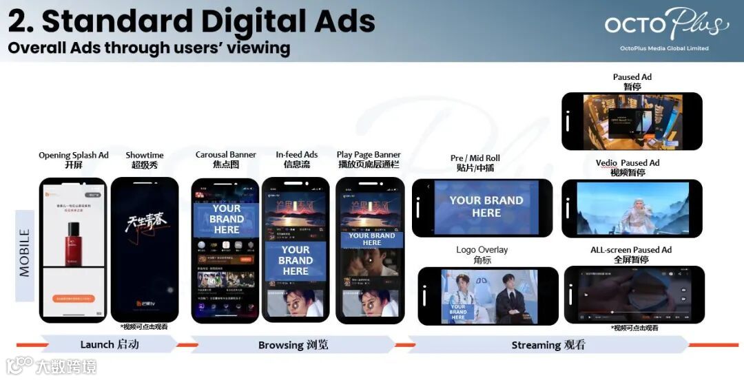 Advertisers can choose more than 5 popular variety shows or TV dramas, insert the advertisement content into the popular programs and push them to online audiences, increasing brand awareness in a short period of time.