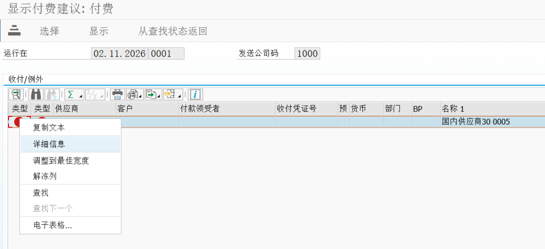 消息号F0004:公司代码 1000 在表 T042 中不存在
