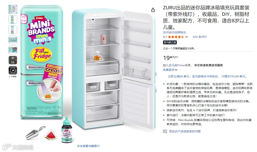 由香港玩具品牌ZURU推出的微缩冰箱套装,在亚马逊上月销量已突破万件,市场热度可见一斑。
