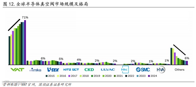 真空阀:真空阀同样将受益于扩产逻辑,且市场目前呈现出高度集中的格局,目前VAT占据市场主要份额,2024年市占率已增长至71%,是真空阀市场的龙头。