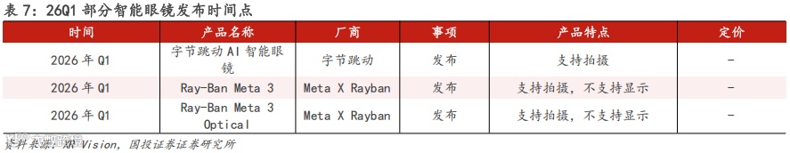 展望26年,字节跳动、Meta均有望发布新款产品,智能眼镜热度不减,伴随光显技术进一步成熟、XR+AI逐步落地,我们预计智能眼镜市场有望持续增长,并带动产业链如光显元件模块、存储模组等相关公司共同受益。