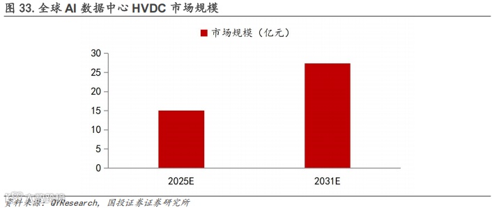 由于HVDC能实现效率及可靠性的提高,预计市场规模有望逐步扩大,据QYResearch数据,2031年全球AI数据中心HVDC供电系统市场销售额预计为27.4亿元,2025-2031年CAGR+10.5%。