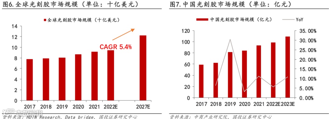 1.2.光刻胶市场持续扩容,半导体光刻胶市场国内增速高于全球