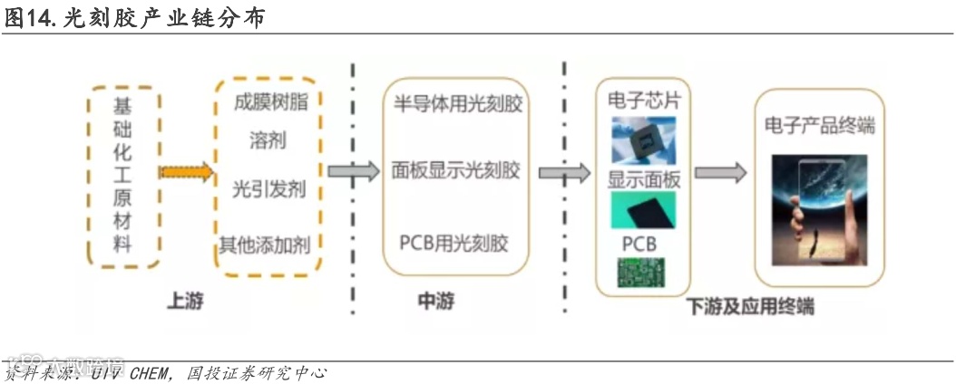 ■光刻胶产业链壁垒高,多环节亟待突破: