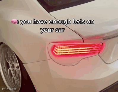 - LED动态的效果比静态图案更抓眼球,LED闪烁方式其中一种是跟随车内播放音乐的节奏,表达“个性”的力度更强;