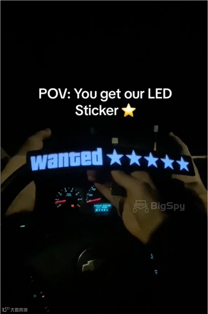 大家近期应该对一款TikTok爆款产品LED汽车贴纸很眼熟,参照GTA 5游戏中通缉等级的显示,它长这样: